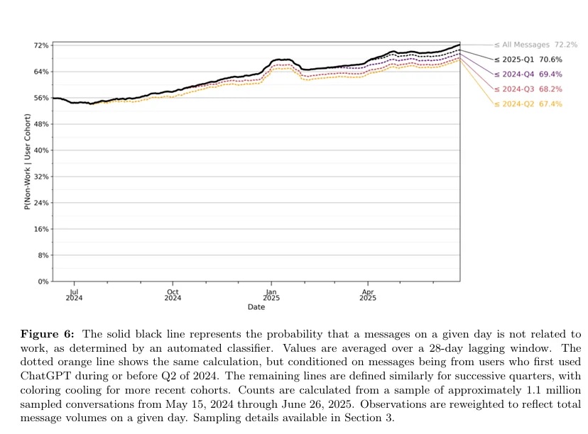 Como resultado, vemos um maior crescimento do uso pessoal do ChatGPT desde 2024: