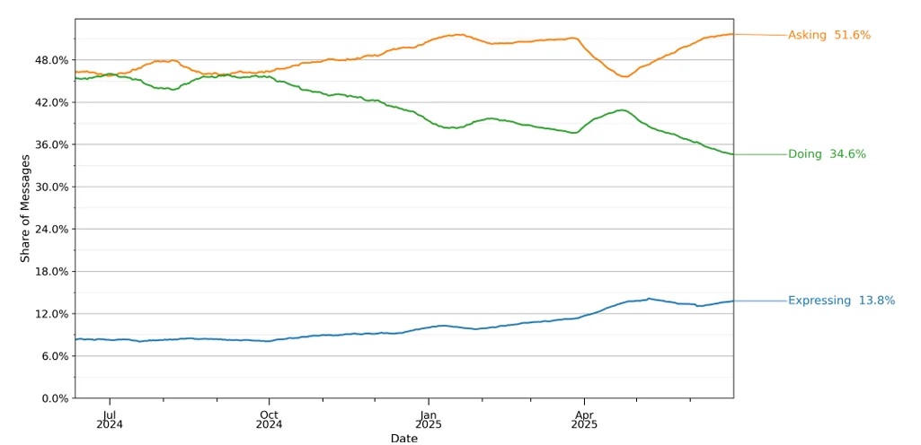 Foram analisadas cerca de 1,5 milhão de conversas, de julho de 2024 a abril de 2025, para entender os perfis que mais usam a IA e o que exatamente eles buscam.