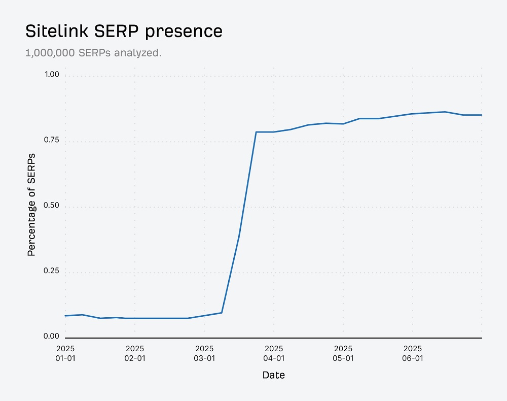 Eles também perceberam que o número de sitelinks, que são as listas de URLs associadas a um resultado, disparou desde março de 2025.